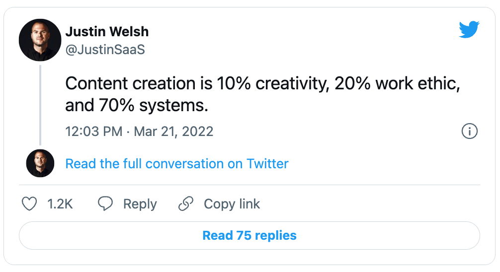 💪🏻10%, 20% and 70%Template:{Thing} is X% {Thing1}, X% {Thing2}, and X% {UnexpectedThing}.Sample:Content creation is 10% creativity, 20% work ethic,and 70% systems.