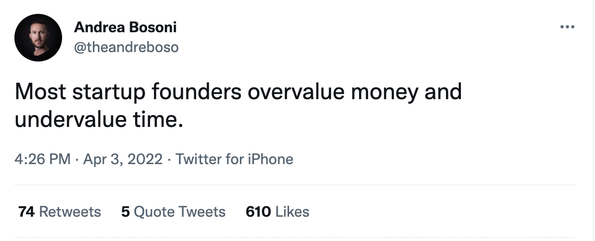 💪🏻Overvalue vs undervalueTemplate:Most {people} overvalue {thing} and undervalue {thing}Sample:Most startup founders overvalue money and undervalued time.