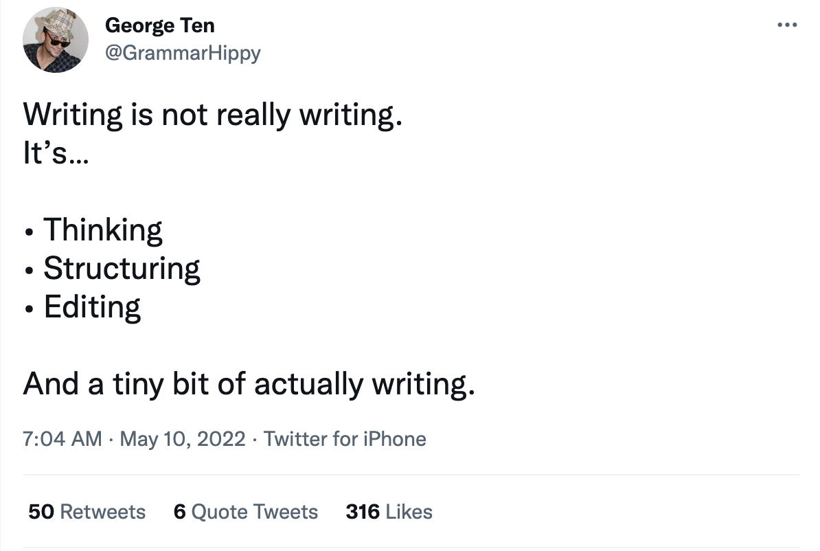 💪🏻What an activity actually isTemplate:{activity} is not really {activity}.It’s…• {task}• {task}• {task}And a t:Sample:Writing is not really writing.It's.ThinkingStructuringEditingAnd a tiny bit of actually writing.