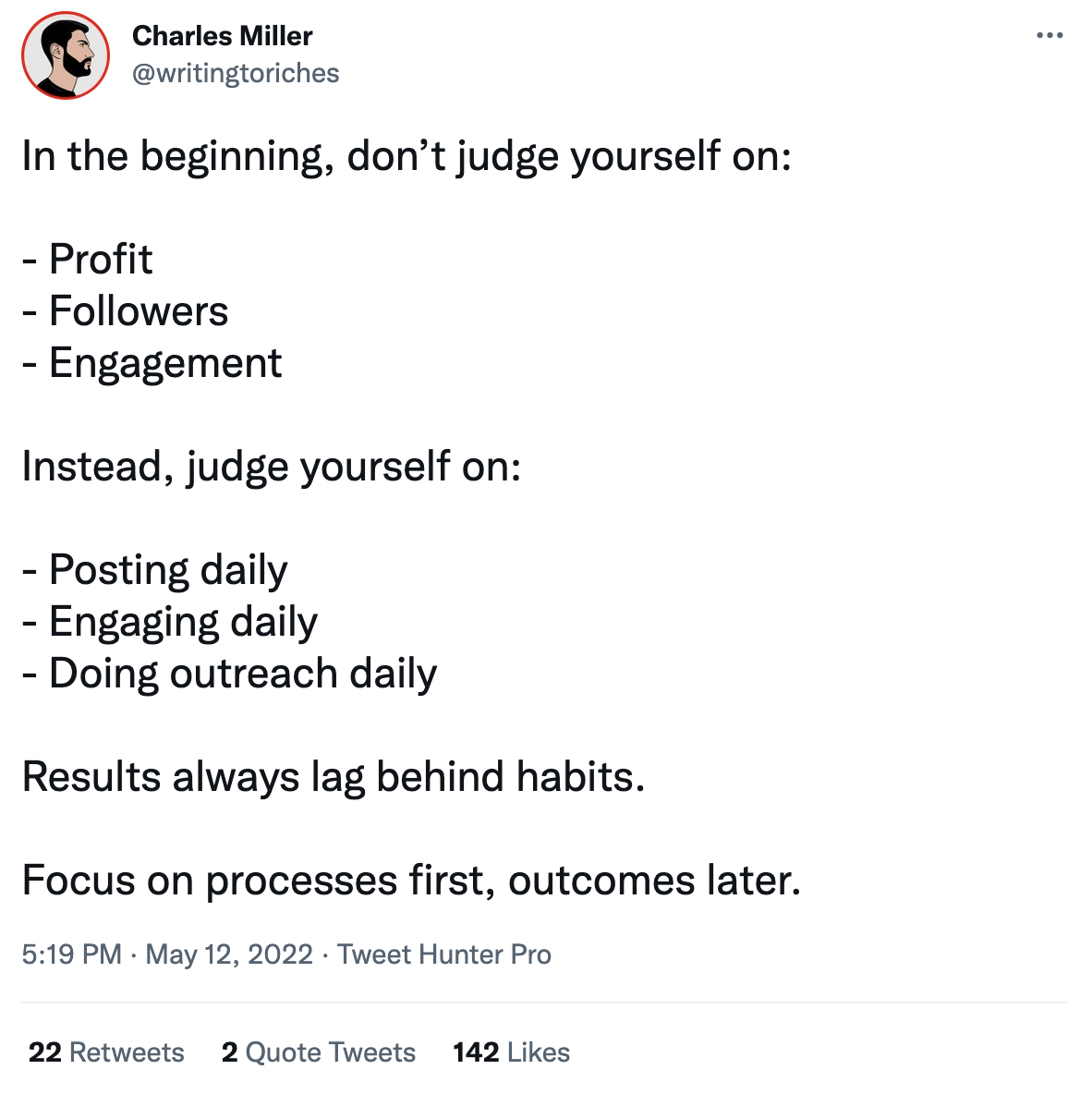Results always lag behind habits.