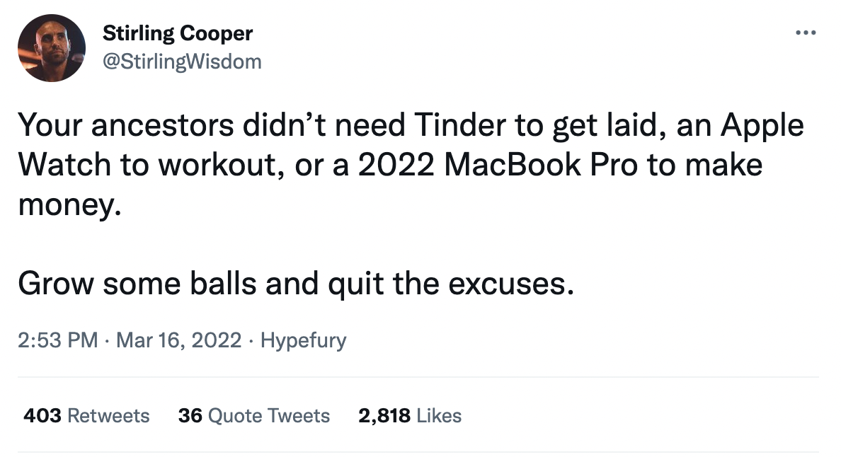 {people in past} didn’t need {non-requirement} to get {desired outcome}, {non-requirement} to {desired outcome}, or a {non-requirement} to {desired outcome}.